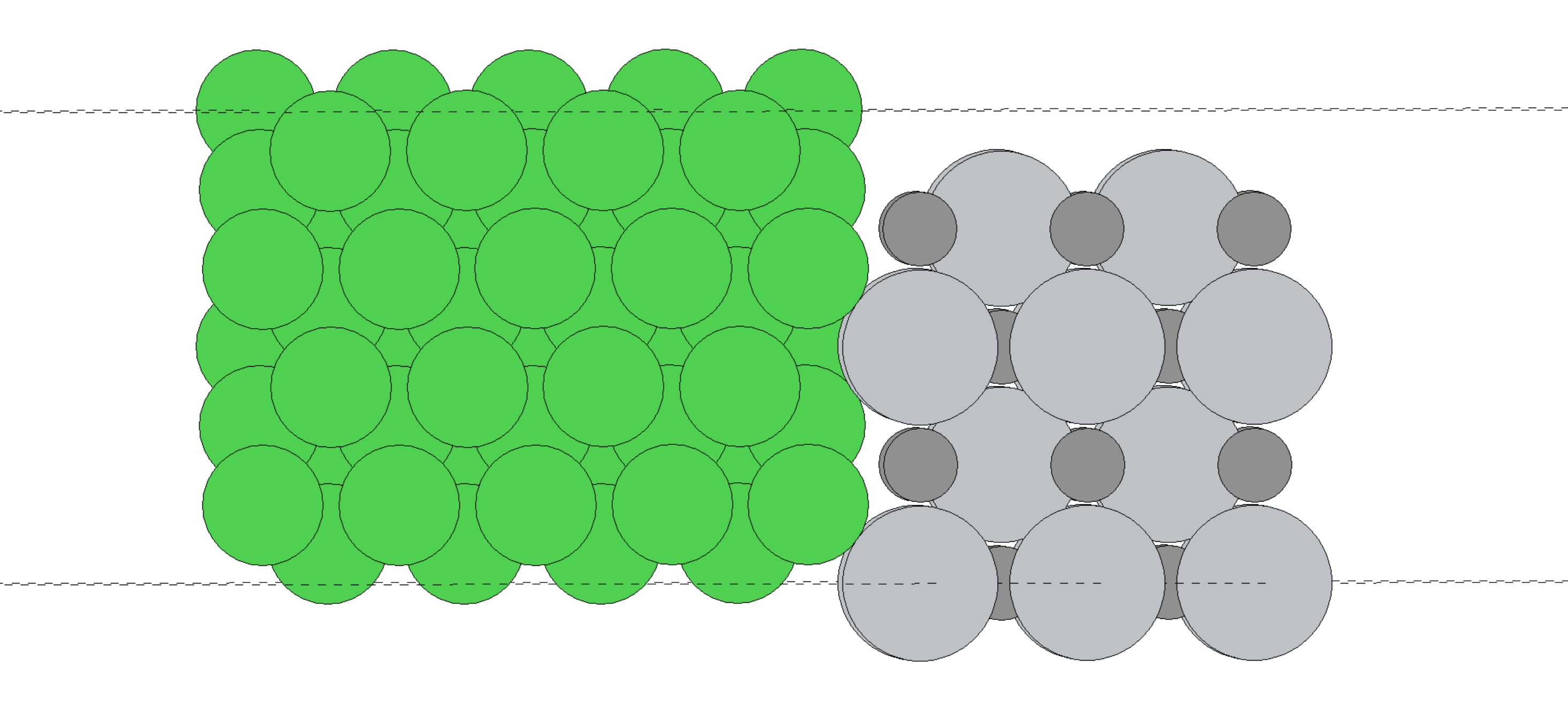 下图图示了某位 ABACUS 用户在科研实际中处理的 TiC-Ni 异质结体系,体系化学式为 Ti20C20Ni54。这类体系由于其低维性质、异质性质、且包含磁性金属 Ni,因而,针对这类体系,收敛且准确的 SCF 计算本身就是一个挑战。